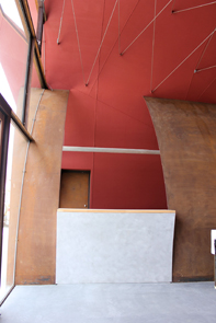 COR-TEN steel was used for all the walls and the roof. The arches made of steel plate were assembled together in order to separate each section. Nowadays modern architectural construction involves the work being subdivided with a variety of specialists involved with each part.
