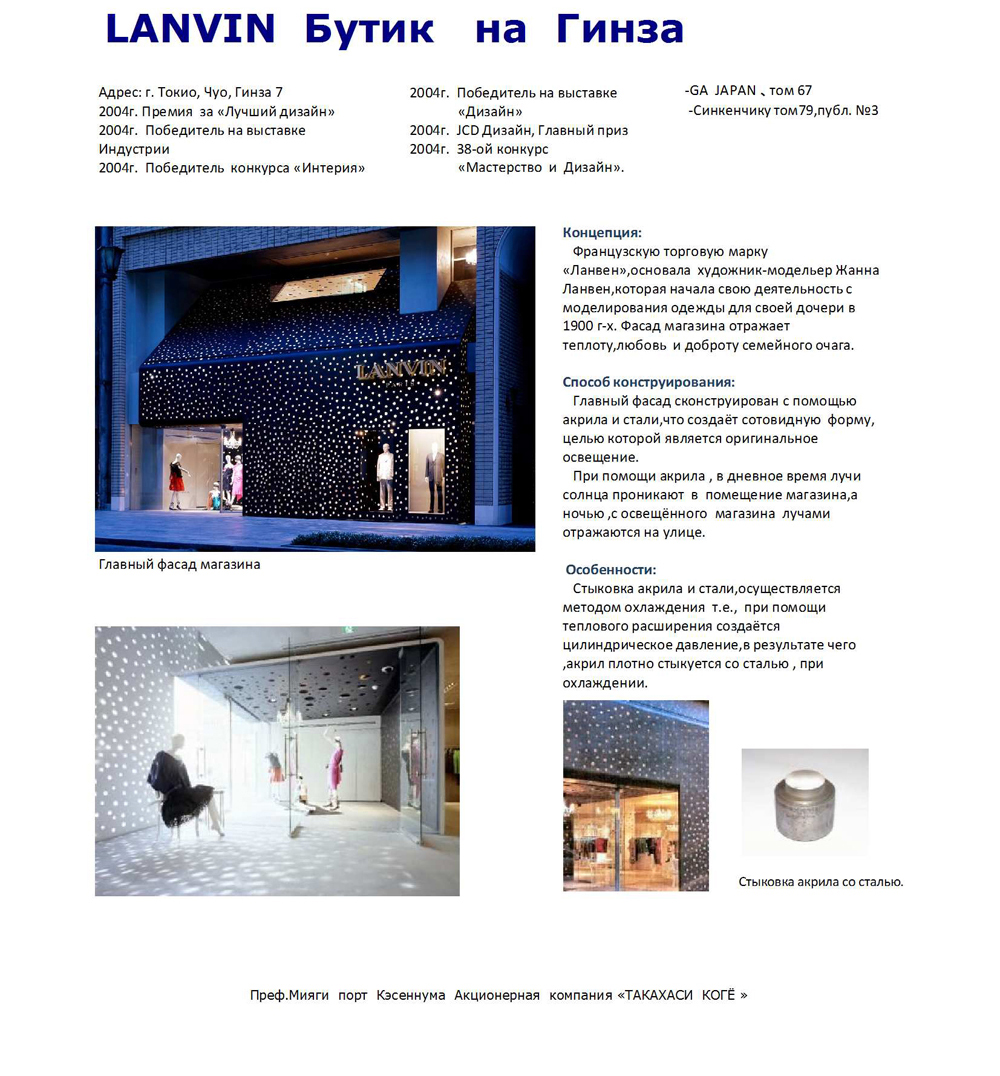 LANVIN Бутик на Гинза Жанна Ланвен,которая начала свою деятельность с моделирования одежды для